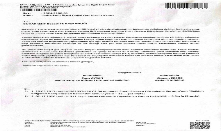 Aydın’ın Buharkent ilçesinde son yıllarda yapılan yatırımlarla enerji, sanayi, turizm, eğitim ve sosyal alanda büyük ivme kazanan ilçede büyümeyle birlikte yatırım planlamaları da artarak devam ederken son olarak doğalgaz kullanımı için de Belediye Meclisinden onay alındı.