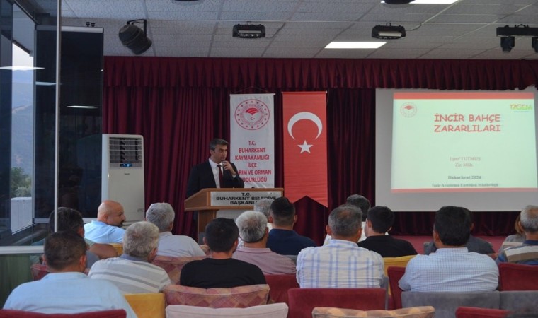 Aydın’ın Buharkent ilçesinde, incir siyah sineği zararlısı ve diğer incir hastalıkları hakkında bilgilendirme toplantısı düzenlendi.