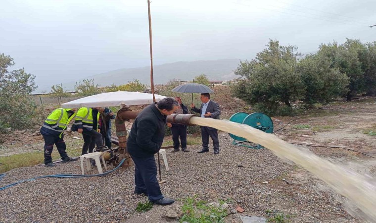 Aydın’ın Buharkent ilçesinde 12 ay boyunca çiftçilere sulama imkanı sağlaması hedeflenen yeraltı kuyuları için Savcılı Mahallesi’nde başlatılan sondaj kuyusundan su çıkartıldı.