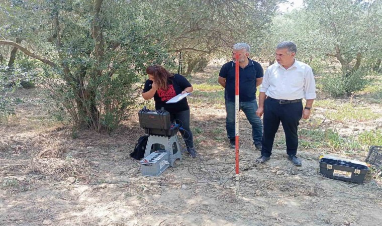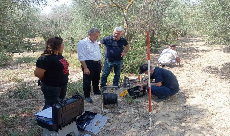 Aydın’ın Buharkent ilçesinde 12 ay boyunca çiftçilere sulama imkanı sağlaması hedefiyle yeraltı kuyularından beslenen kapalı devre damla sulama sistemi için çalışmalarına devam eden Buharkent Belediye Başkanı Mehmet Erol, yetkililerle birlikte Ortakçı Mahallesi’nde jeofizik çalışma gerçekleştirdi.