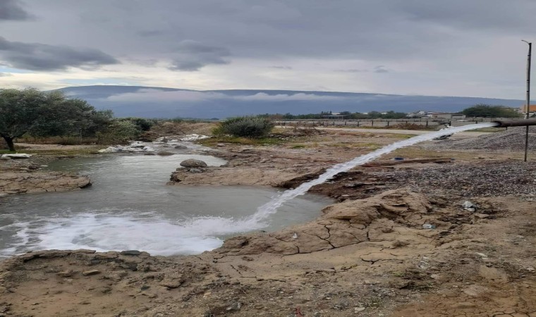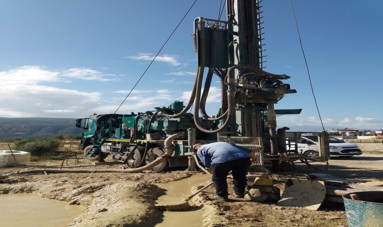 Aydın’ın Buharkent ilçesinde 12 ay boyunca çiftçilere sulama imkanı sağlaması hedeflenen yeraltı kuyuları için Savcılı Mahallesi’nde başlatılan sondaj kuyusundan su çıkartılırken, 2 kuyudan saatte 104 litre su elde edildi.