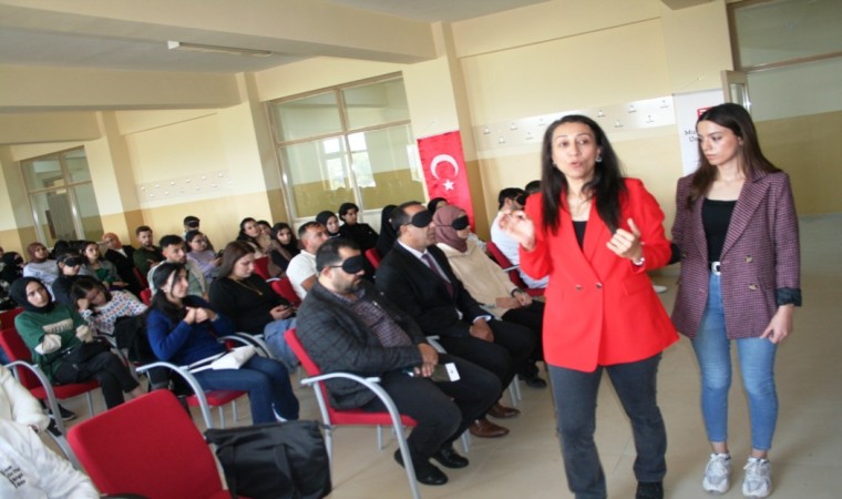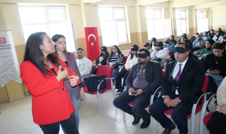 MUŞ (İHA) – Muş’un Bulanık Meslek Yüksekokulu tarafından görme engelli bireylerin yaşamlarına dair bilgilerin yanı sıra onlarla empati duygusu geliştirebilmek adına ‘Empati Semineri’ düzenlendi.