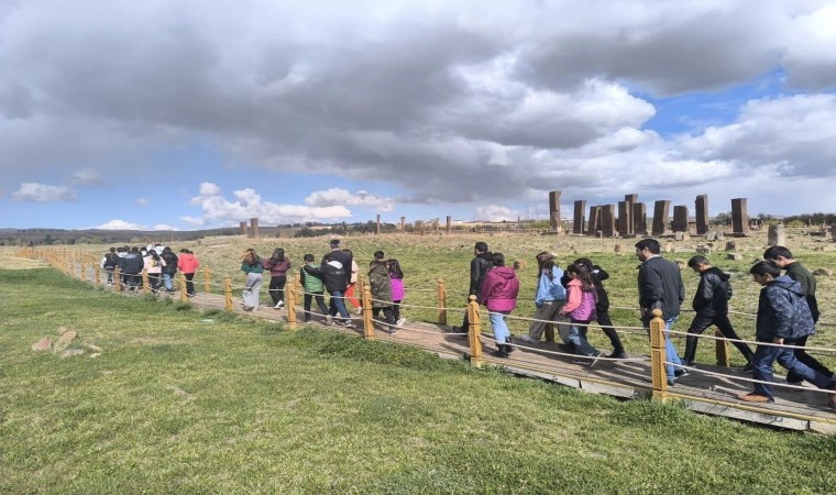 Bulanık Kaymakamlığı tarafından Ahlat’a gönderilen öğrenci ve öğretmen, ilk olarak Ahlat Selçuklu Meydan Mezarlığını ziyaret etti. Ahlat’ın genel tarihi ve Selçuklu Meydan Mezarlığı hakkında bilgi alan öğrenciler, mezar taşlarını dikkatle incelerken, bol bol fotoğraf çektiler.