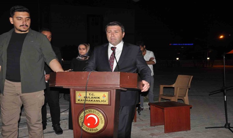 Program çerçevesinde şehitler için Merkez Camisi’nde Kur’an-ı Kerim tilaveti okundu ve dualar edildi. Akşam saatlerinde Bulanık Kent Meydanında 15 Temmuz darbe girişimi ile ilgili sinevizyon gösterisi ile devam eden programda bir konuşma yapan Kaymakam ve Belediye Başkan Vekili Oğuzhan Ocak, "15 Temmuz hain darbe girişiminin tıpkı Çanakkale’de Kurtuluş Savaşı’nda olduğu gibi yeni bir direnişle bertaraf edilişinin 7. yıl dönümünü anma programına hepiniz hoş geldiniz. Tarihin en ağır imtihanlarından birini yaşayan ülkemiz, 7 sene önce 15 Temmuz gecesi devletimizin içine sızmış bir grup FETÖ’cü çete tarafından, milletimize ait tanklar, silahlar ve uçaklarla hain bir saldırıya maruz kalmış. Allah’ın inayeti, Cumhurbaşkanımız ve idarecilerimizin dirayeti, aziz milletimizin cesareti ve bu memleketin öz evlatları olan kahraman silahlı güçlerimizin üstün gayret ve eşsiz direnişiyle bu saldırı bertaraf edilmiştir. 15 Temmuz; Türk milleti olarak bir olduğumuzu, tek yürek olduğumuzun, hep beraber Türkiye olduğumuzun, tek millet ve tek devlet olduğumuzun, vatan ekseninde her zaman beraber durabildiğimizin, Anadolu olduğumuzun ilanıdır. Bugün milletimiz; demokrasi dışında hiçbir güce boyun eğmeyeceğini tarihe altın harflerle yazmıştır. Bundan sonraki her türlü gayri meşru girişimin önünü kapatmış, demokrasi ve cumhuriyetine sahip çıkmıştır. Bu duygularla başta Gazi Mustafa Kemal Atatürk olmak üzere Malazgirt Zaferi’nden bu yana Çanakkale’de Kurtuluş Savaşı’nda, 15 Temmuz gecesinde bu vatanın bütünlüğünü korumak adına bölücü terör örgütleriyle verilen bütün mücadelelerde şehit olan atalarımıza, askerlerimize, jandarmalarımıza, polislerimize, koruyucularımıza, öğretmenlerimize, doktorlarımıza Allah’tan rahmet, ailelerine ve milletimize baş sağlığı, kahraman gazilerimize şifa diliyorum. 15 Temmuz Demokrasi Zaferimiz kutlu olsun” dedi.