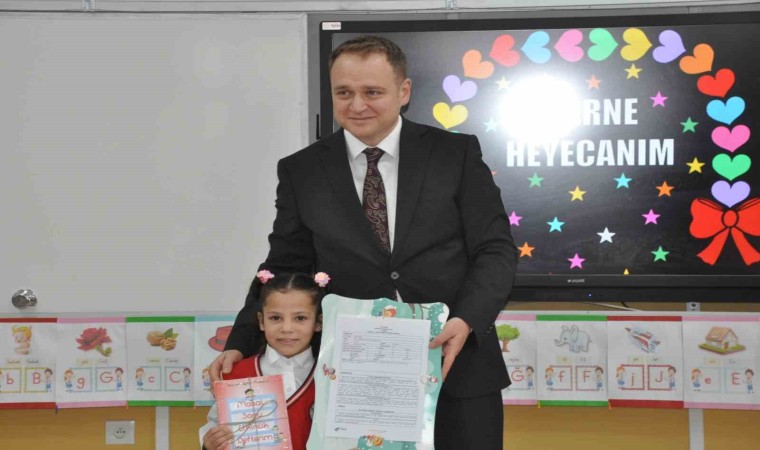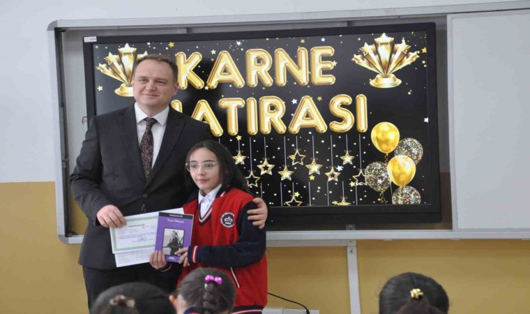 Sınıfları gezerek çocuklarla bir süre sohbet eden Koşansu, karne ve karne hediyelerini dağıttıktan sonra onlarla hatıra fotoğrafı çektirdi.
