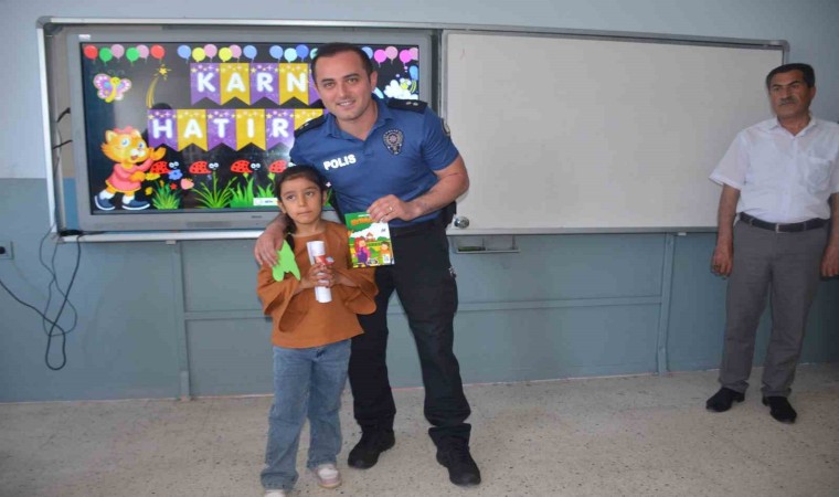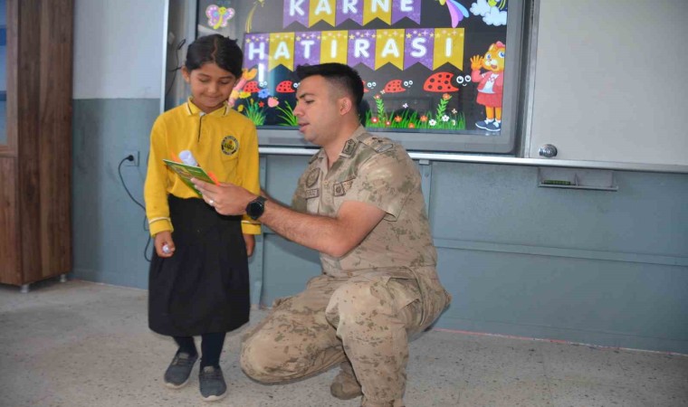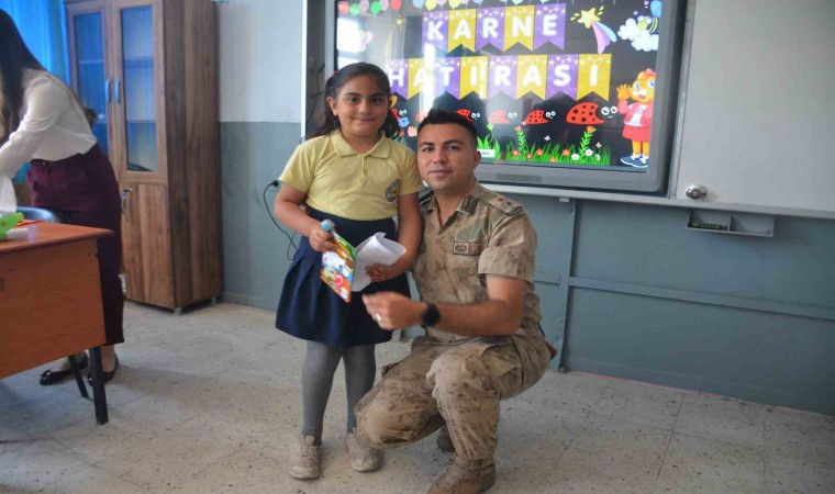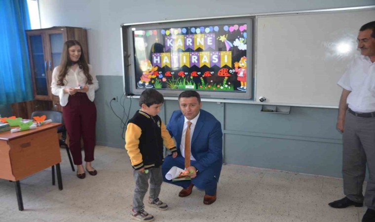 Yapılan konuşmanın ardından Kaymakam Ocak, beraberindekilerle birlikte öğrencilere karnesini dağıttı.