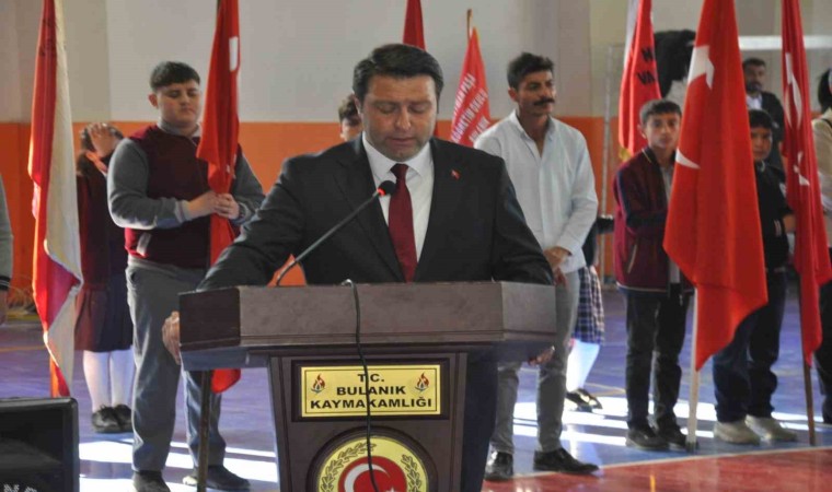 Bulanık Spor Salonunda saygı duruşu ve İstiklal Marşı’nın okunmasıyla başlayan tören, Bulanık Kaymakamı ve Belediye Başkan Vekili Oğuzhan Ocak’ın konuşmasıyla devam etti. Ocak, “Mustafa Kemal Atatürk’ün milletimize eşsiz bir armağanı olan Cumhuriyet’in ilanının 100. yılını birlikte kutlamanın mutluluğunu yaşıyoruz. Milli mücadele sonrası Büyük Önder Mustafa Kemal Atatürk’ün milletimize eşsiz armağanı olan Cumhuriyetimizin 100. yılı kutlu olsun. Türkiye için sadece yönetim şekli değil, aynı zamanda en çağdaşlaşma hamlesi olan Cumhuriyet, geçirdiği çağdaş açılımlarla insanımızın ufkunu genişletmiş, ekonomik, sosyal olarak görülmemiş bir ivme kazanmıştır. Gazi Mustafa Kemal Atatürk ve silahlı arkadaşları önderliğinde bu milletin dişiyle, tırnağıyla kazandığı Kurtuluş Savaşı, 29 Ekim 1923 tarihinde Cumhuriyet’in ilanıyla taçlandırılmış, devletimiz muasır medeniyetler seviyesinde yerini almıştır. Dil, din, ırk, mezhep herhangi bir ayrım gözetmeksizin her vatandaşın sosyal, siyasal, ekonomik, hayatın her alanında eşit ve özgür vatandaşlar olarak her hakka sahiptir. Başta Cumhuriyetimizin kurucusu Gazi Mustafa Kemal başta olmak üzere silah arkadaşları, vatan, bayrak, millet, demokrasi uğruna canlarını feda eden şehitlerimizi ve aramızda ayrılan gazilerimizi rahmetle anıyorum” dedi.