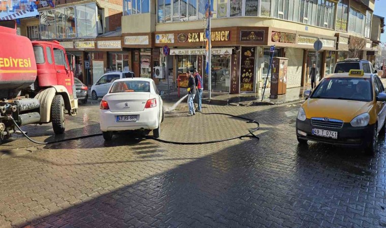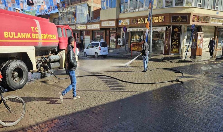 Muş’un Bulanık Belediyesi İtfaiye Amirliği ve Temizlik İşleri Müdürlüğü ekipleri tarafından ana cadde ve bağlı sokaklar tazyikli su ile yıkandı.