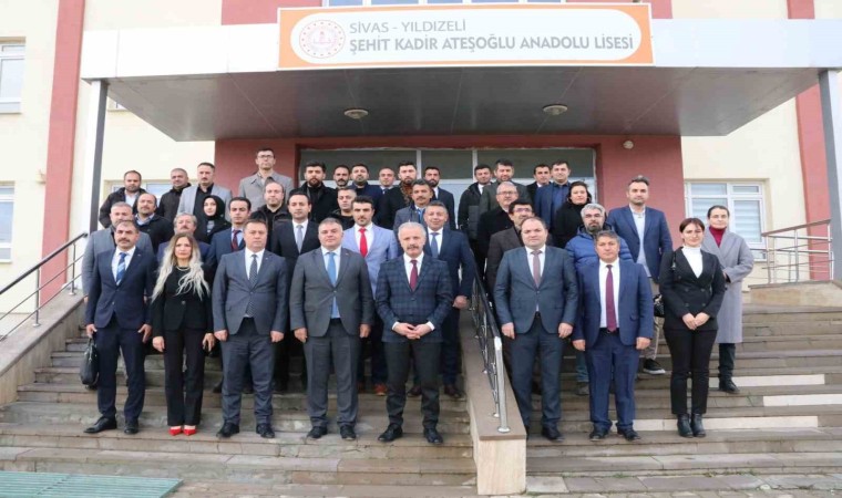 MEB Ölçme, Değerlendirme ve Sınav Hizmetleri Genel Müdürü Kemal Bülbül, Daire Başkanı Ramazan Hoşgeldi ve Sivas Milli Eğitim Müdürü Necati Yener ile birlikte Yıldızeli Şehit Kadir Ateşoğlu Anadolu Lisesinde okul müdürleri ile bir araya geldi.