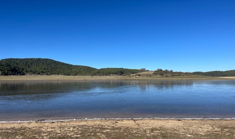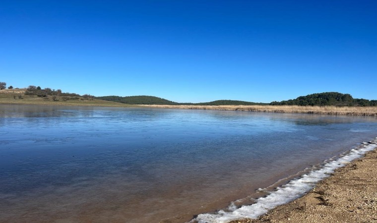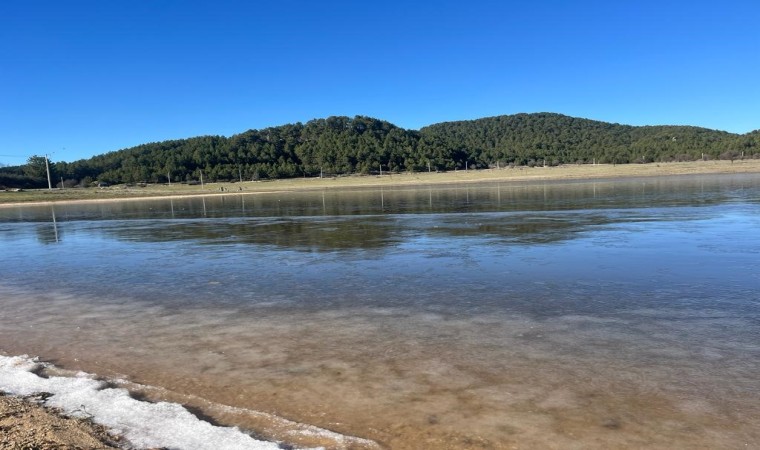 Denizli’de 1150 rakımlı Süleymanlı Yayla Gölü, gece saatlerinde düşen sıcaklık sonrası kısmen buz tuttu.
