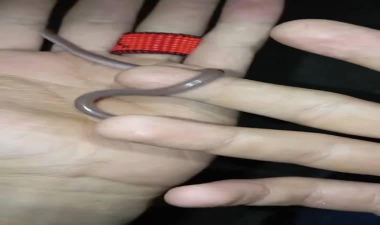 Elazığ’da iki arkadaş, mahallede gezerken buldukları yavru yılanı ellerine alarak bir süre oynarken o anları cep telefonu kamerası ile kayda aldılar.
