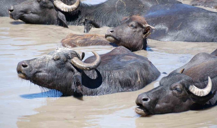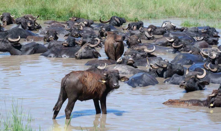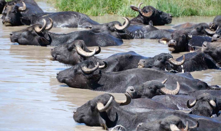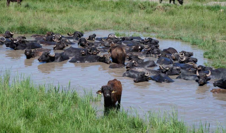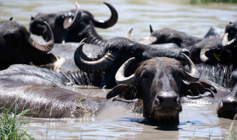 120 mandaya çobanlık yapan 8 çocuk babası Nazım Çelik (64), işini severek yaptığını anlatarak, “Her sabah köydeki mandaları meydanda topluyorum ve çayırlarda otlatıyorum. Mandaların en büyük ihtiyacı su ve su banyosu. Bu onlar için olmazsa olmaz. Su banyosunun vaktini mandalar ayarlıyor. İhtiyaçları olduğunu anlıyorum ve dere kenarına götürüyorum. Sudan ne zaman çıkacaklarına yine onlar karar veriyor. Serinlemek ve su içinde olmak onlara keyif veriyor. Hayvanların suya girmesi süt verimini artırıyor. Ancak bulunduğumuz alanda ciddi anlamda su sıkıntısı var. Yetkililerden bu anlamda destek bekliyoruz” diye konuştu.