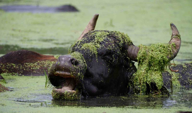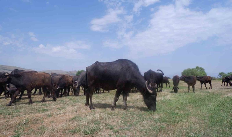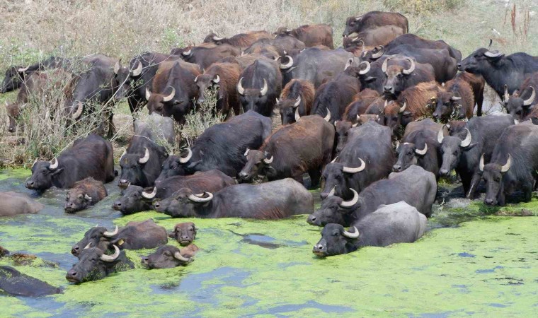 Erzurum’a birkaç kilometre uzaklıktaki Söğütlü köyündeki mandaların doğal ortamında beslenmeleri sonrası dere içinde geçirdikleri keyifli dakikalar, Tanzanya’nın Serengeti Milli Parkı’nı akıllara getiriyor. Sıcaktan bunalan mandalar saatlerce sudan çıkmıyor.