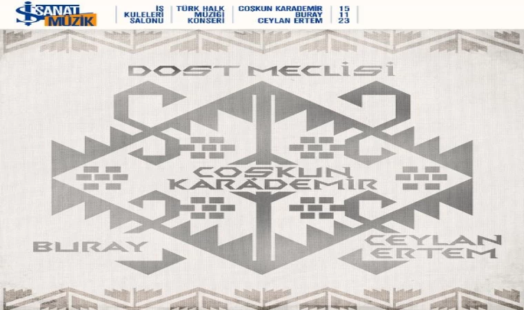 İSTANBUL, (DHA) - İş Kuleleri Salonu'nda 15 Kasım'da gerçekleşecek 'Dost Meclisi' konserinde farklı müzik türlerini kendine has yorumuyla beğeni toplayan Ceylan Ertem ve pop müziğin sevilen ismi Buray, Coşkun Karademir'in sahnesine konuk oluyor. Konserde Neden Çattın Kaşlarını, Ne Ağlarsın, Dostum Dostum gibi sevilen türküler konukların özgün yorumlarıyla yeniden seslendirilecek.