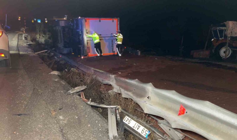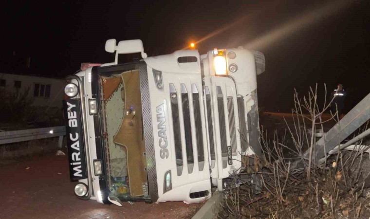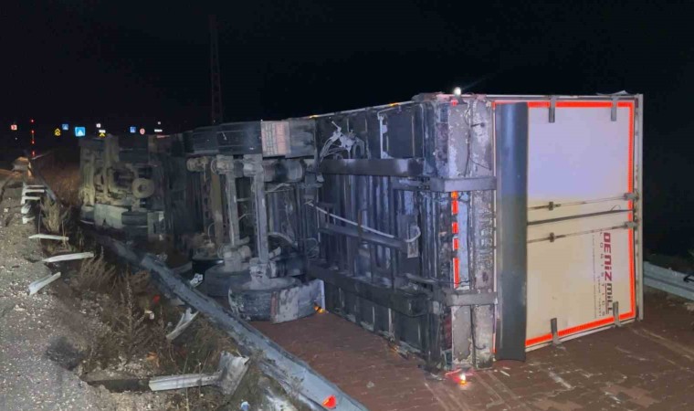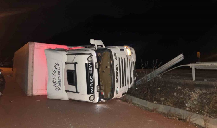 Burdur Antalya karayolunda seyir halindeki tırın kontrolden çıkarak yan yola devrilmesi sonucu 1 kişi yaralandı.
