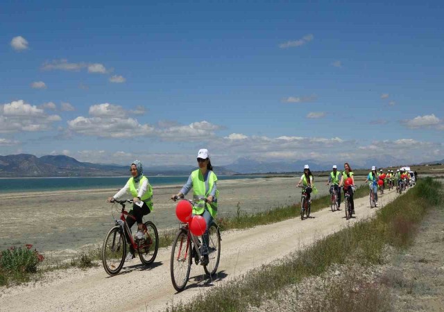 Burdur'da Çevre Şehircilik ve İklim Değişikliği İl Müdürlüğü çalışanları, Emniyet ve Jandarma ekipleri ile işbirliği yaparak çevre temizliğine vurgu yapmak amacıyla Burdur Gölü kıyısında bisiklet sürdü ve çöp topladı.