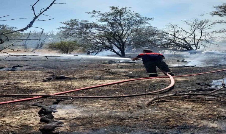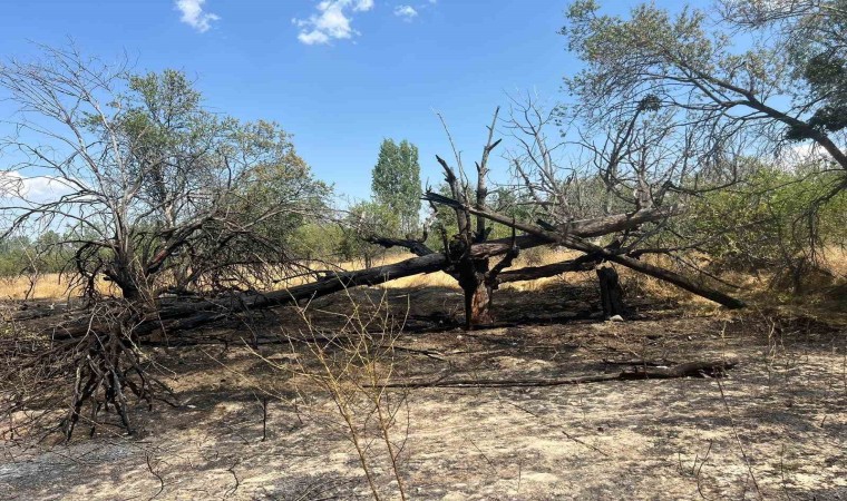 Burdur’da çıkan yangında 50 dönüm arazi ve içerisinde bulunan 100 adet meyve ağacı yanarak kül oldu.
