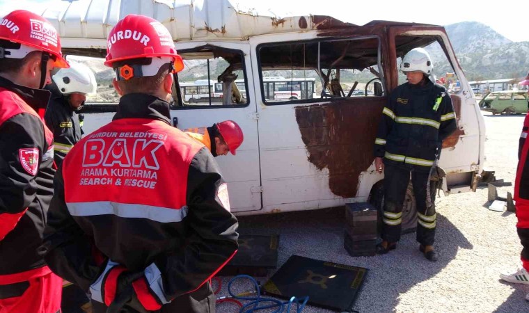 6 Şubat depremlerinde büyük bir özveriyle çalışan Burdur İtfaiyesi, 150 gönüllü personel ile Burdur Belediyesi Arama Kurtarma ekibi kurdu. Ekip, kurulan özel platformda eğitim tatbikatı gerçekleştirdi.
