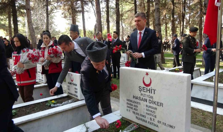 Burdur Şehitliği’nde düzenlenen tören, Burdur Valisi Türker Öksüz, Belediye Başkanı Ali Orkun Ercengiz, Garnizon Komutanı Tank Albay Şengezer Şimşek, Muharip Gaziler Derneği Başkanı Hasan Okyar tarafından şehitlik anıtına çelenk sunulması ile başladı. Daha sonra saygı duruşunda bulunulup İstiklal Marşı okunduğu programda saygı atışı yapıldı. Günün anlam ve önemini belirten konuşmanın ardından Gazi Himmet Can “Ahmet’im Mehmet’im Kınalı Alim” adlı şiirini okudu.