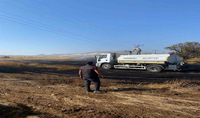Burdur’un Karamanlı ilçesinde çıkan yangında 30 dönüm hububat ekili tarım arazisi kül oldu.