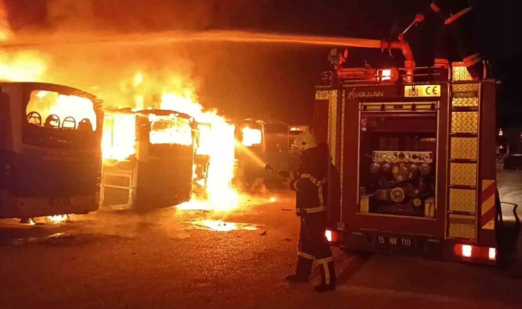 Burdur’da gece saat 03.18’de merkez Aydınlıkevler Mahallesi Mahrukatcılar Sitesi Terakki Sokak üzerinde bulunan Özel Halk Otobüsleri Kooperatifi otopark alanında park halinde bulunan bir halk otobüsünde henüz bilinmeyen bir nedenle yangın çıktı. Hızla büyüyen yangın yan yana duran park halindeki diğer otobüslere de sıçradı 112 Acil Çağrı Merkezi’ne yapılan ihbar üzerine olay yerine çok sayıda itfaiye, polis ve sağlık ekibi sevk edildi. Olay yerine gelen itfaiye ekipleri yangına müdahale ederken polis ekipleri ise çevrede güvenlik önlemi aldı. İtfaiye ekiplerinin uzun uğraşları sonucu kontrol altına alınarak söndürülen yangında 5 halk otobüsü tamamen yanarken camları patlayan 1 otobüs ise son anda olay yerinden çekildi.