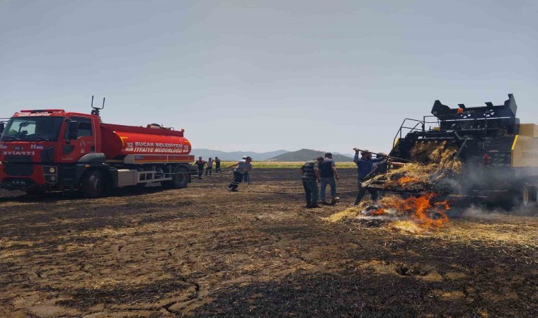 Burdur’un Bucak ilçesinde tarlada balya makinesinden çıkan yangında 9 dekarlık alan ve balya makinesi yanarak kül oldu.