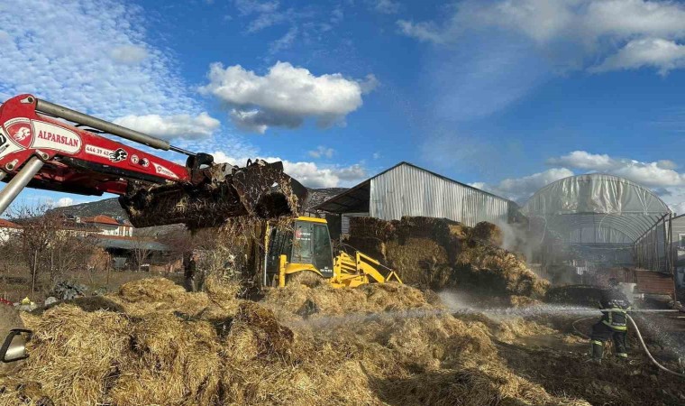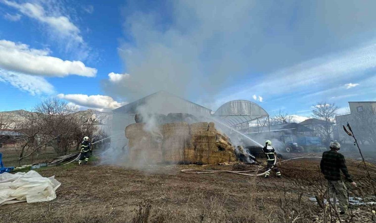 Bölgeye gelen itfaiye ekiplerinin müdahalesiyle yangın kontrol altına alınarak söndürülürken 80 adet saman balyası kül oldu.