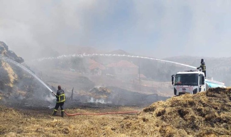 Burdur’un Çavdır ilçesinde çıkan yangında saman balyaları kül oldu.