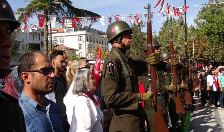 Yürüyüşün ardından Cumhuriyet Meydan’ında Gençlik ve Spor İl Müdürlüğü sporcuları tarafından Halk Oyunu gösterisi yapıldı. Gösteri sonrasında Burdur Valisi Türker Öksüz, Garnizon Komutanı Tank Albay Şengezer Şimşek ve Burdur Belediye Başkanı Ali Orkun Ercengiz tarafından Atatürk anıtına çelenk sunularak saygı duruşunda bulunulup İstiklal Marşı okundu.