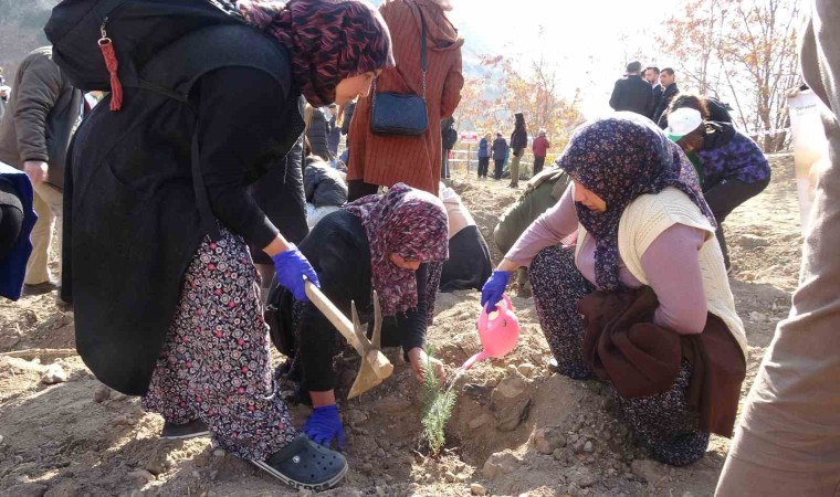 Konuşmaların ardından protokol üyeleri ve katılımcılar tarafından fidanlar toprakla buluşturularak can suyu verildi.