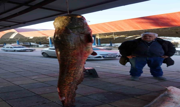 Dev balık, pazarda parça parça satılarak bölge halkının sofralarını süsleyecek.