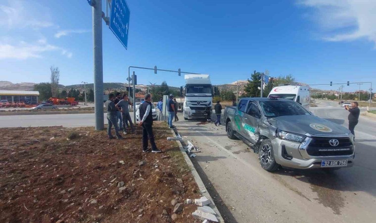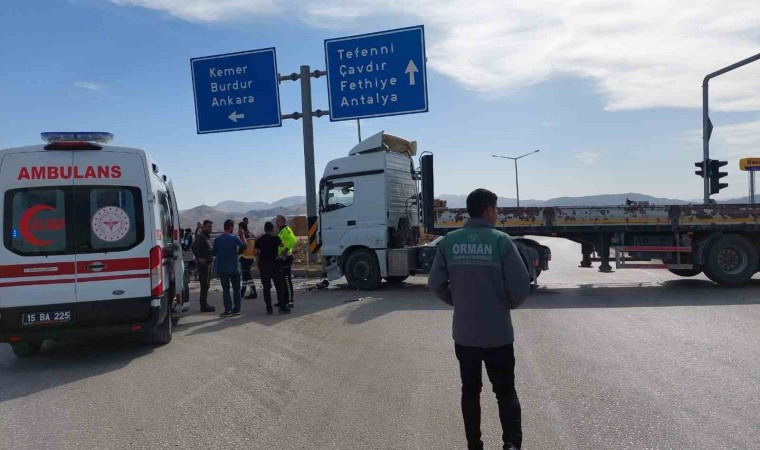 Burdur’un Karamanlı ilçesinde Orman İşletme Müdürlüğüne ait araç ile tırın çarpıştığı kazada 1 kişi yaralandı.
