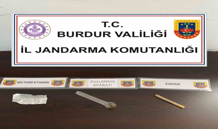 Burdur İl Jandarma Komutanlığı unsurları tarafından Burdur ve Bucak Cumhuriyet Başsavcılıkları koordinesinde yapılan çalışmalar sonucu 2 Kasım tarihinde Burdur merkez mülki sınırları içerisinde B.E. isimli şahsın üzerinde yapılan adli aramada 2 gram esrar, 1 gram metamfetamin, 1 adet uyuşturucu kullanma aparatı ele geçirildi.