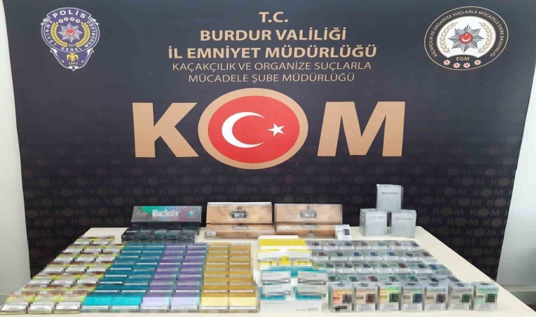 Burdur’da Kaçakçılık ve Organize Suçlarla Mücadele Şube Müdürlüğü ekipleri tarafından 11 Eylül günü elektronik sigara, tütün mamulleri ve makaron kaçakçılığıyla mücadelenin görünürlüğünün ve etkinliğinin arttırılması ile yasa dışı ürünlerin toplum nezdinde ulaşılabilirliğinin azaltılması amacıyla tespit edilen şahıslara yönelik R.C, B.A, S.E ve C.Ç isimli şahısların ikamet, işyeri ve araçlarına yapılan operasyonda; 900 paket bandrolsüz gümrük kaçağı sigara, 36 adet elektronik sigara, 100 adet puro, 100 paket ısıtılmış tütün mamulü sigara, 20 bin adet bandrolsüz boş makaron, ele geçirildi.