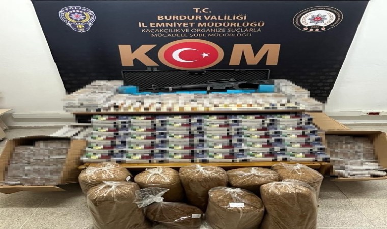 Burdur İl Emniyet Müdürlüğü ekipleri tarafından Bucak ilçesinde doldurulmuş makaron ve kaçak tütün mamulü ürünlerin satışını yaparak piyasada haksız kazanç elde ettikleri ve devletin vergi kaybına neden oldukları tespit edilen E.İ., M.İ., V.Ö. ve M.B. isimli şahısların ikametlerinde, iş yerlerinde ve depolarında yapılan aramalarda 108 bin 160 adet (5 bin 408 paket) doldurulmuş makaron/sigara, 12 bin 400 adet kaçak boş makaron, 51 bin 600 gram kıyılmış tütün, 200 paket sigara sarma kâğıdı, 84 adet mükerrer kullanım amaçlı kesilmiş bandrol, 81 adet elektronik sigara parçası/likit, 2 adet kompresörlü sigara sarma makinası, 1 adet ruhsatsız tüfek ile 2 adet kartuş ele geçirildi.