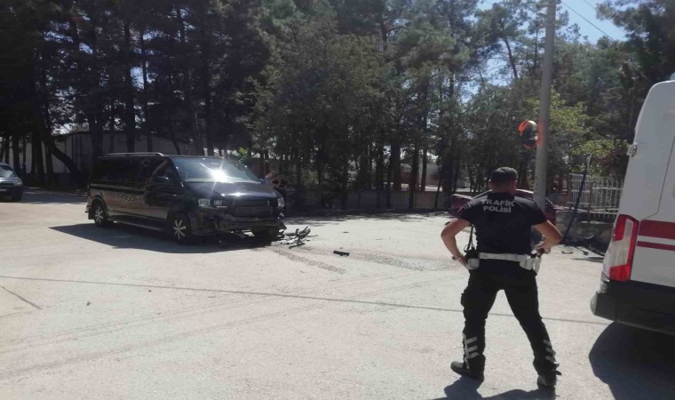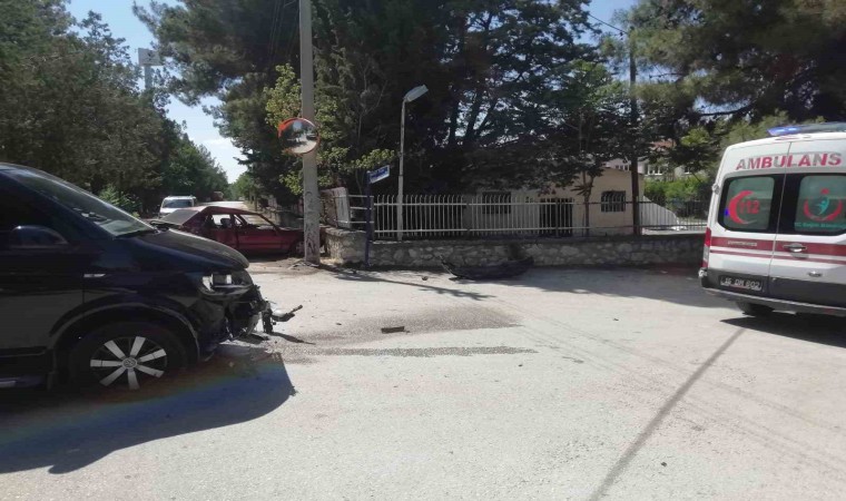 Burdur’da kontrolsüz şekilde kavşağa giren minibüs ile otomobilin çarpışması sonucu otomobil sürücüsü yaralandı.