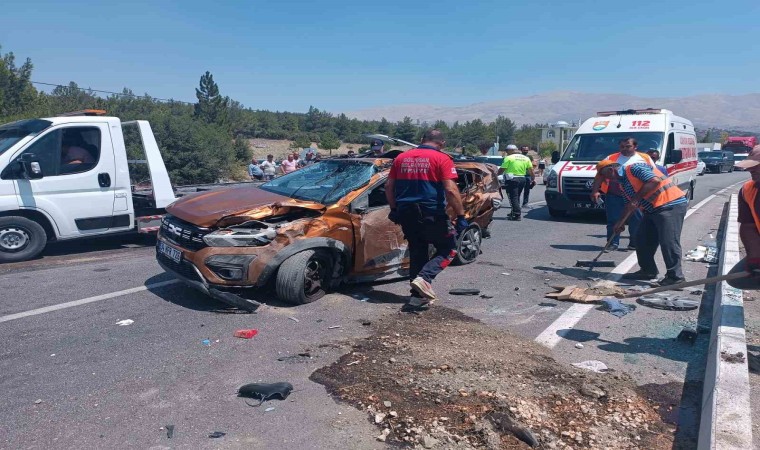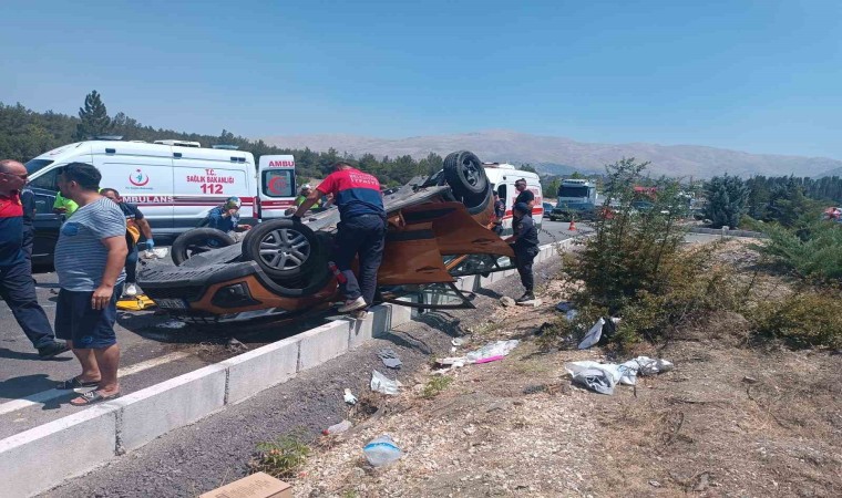 Burdur’un Çavdır ilçesi Denizli-Antalya karayolunda iki otomobilin çarpışması sonucu meydana gelen trafik kazasında, takla atan araçtaki 2 kişi yaralandı.