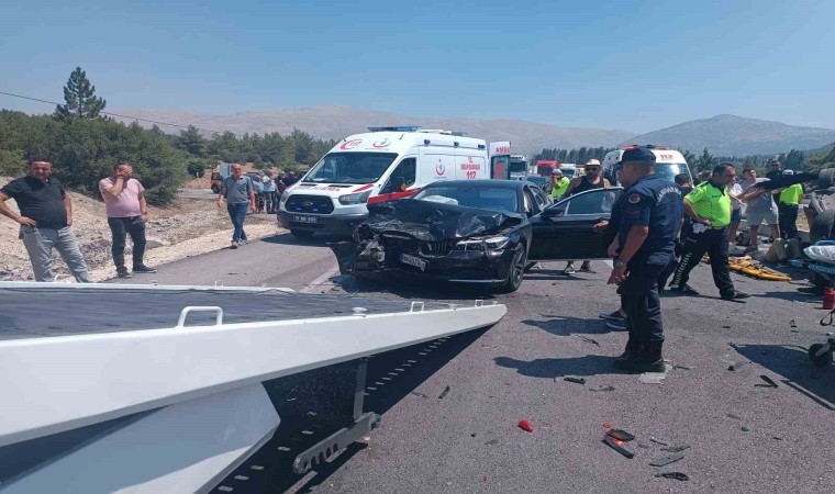 Kaza saat 13.00 sıralarında Burdur’un Çavdır İlçesi Bölmepınar Köyü yakınları Denizli-Antalya karayolunda meydana geldi. Edinilen bilgilere göre anayolda seyir halinde olsan Sezgin Ö. (22) idaresindeki HN OZ 448 plakalı BMW marka lüks otomobil Bölmepınar köyü kavşağına geldiği esnada kavşaktan anayola çıkan Yusuf O. (64) idaresindeki 34 HFR 726 plakalı Dacia marka otomobille çarpıştı. Çarpışmanın etkisiyle takla atan Dacia marka otomobil sürücüsü Yusuf O. ve aynı araçta yolcu olarak bulunan Muazzez Y.O.(63) yaralandı. Kazayı görenlerin 112 Acil Çağrı Merkezine ihbarı üzerine olay yerine sağlık, itfaiye, polis ve jandarma ekipleri sevk edildi. Olay yerine gelen itfaiye ekiplerinin çalışmaları ile birlikte araçtan çıkarılan yaralılar sağlık ekiplerinin yaptığı ilk müdahale sonrası ambulans ile hastaneye kaldırıldı. Araçlar çekici yardımıyla yoldan kaldırılırken diğer araç sürücüsü ifadesi alınmak üzere karakola götürüldü.