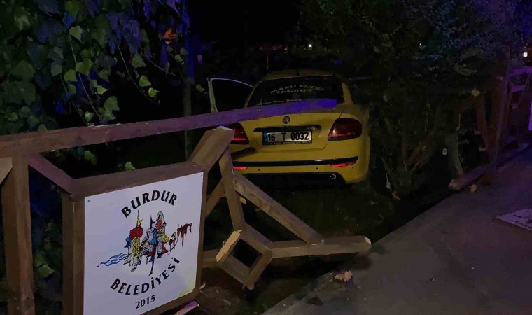 Burdur’da polis ekiplerinin "dur" ihtarına uymayan ehliyetsiz ve alkollü taksi şoförü, aracının direksiyon hakimiyetini kaybedip kaldırıma çıkarak çay bahçesine daldı.