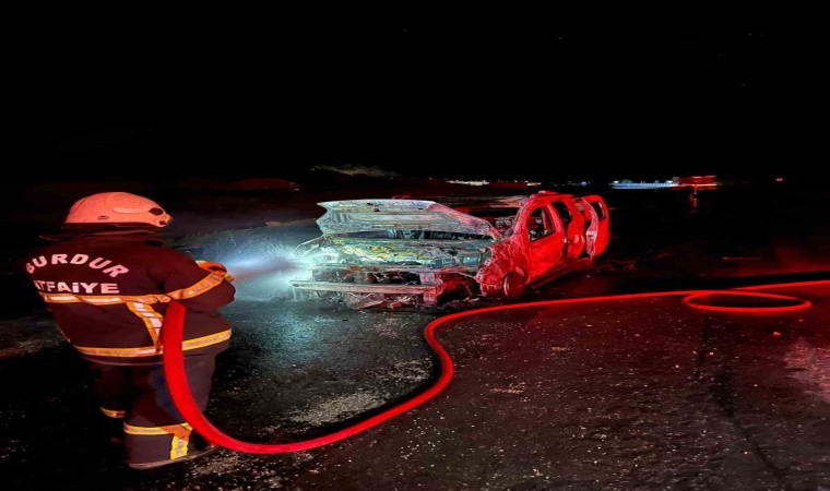Burdur-Antalya Karayolu’nda seyir halindeki hafif ticari araçta çıkan yangında itfaiyenin tüm müdahalesine rağmen araç tamamen yanarak kullanılamaz hale geldi.