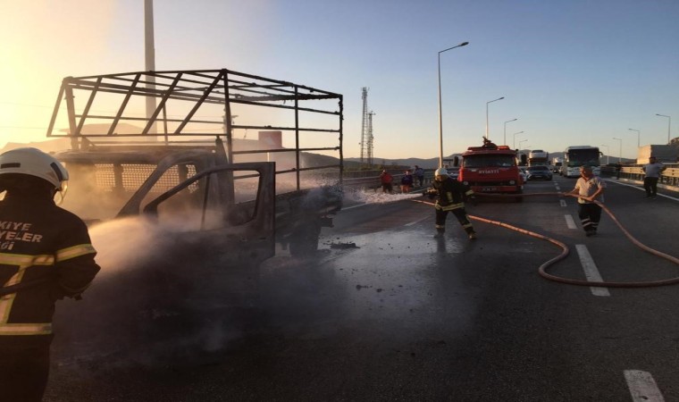 Burdur’un Bucak ilçesinde seyir halindeki kamyonet alev alev yandı.