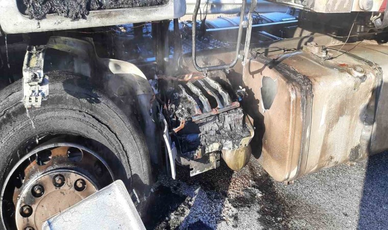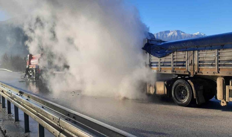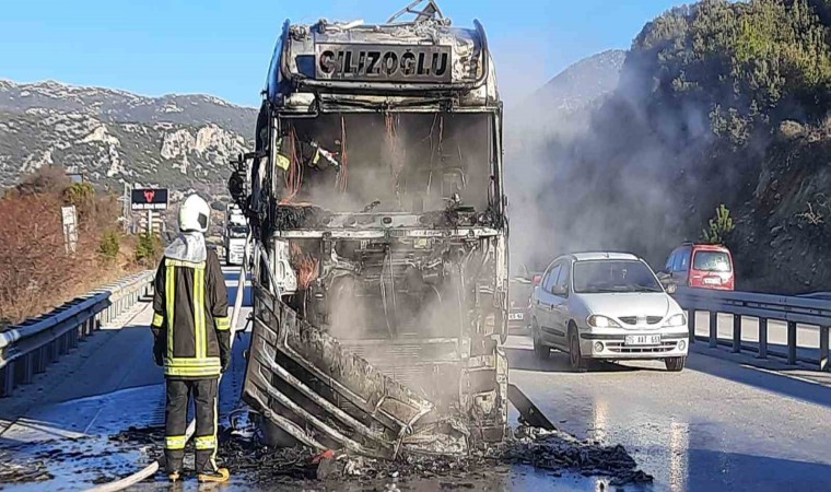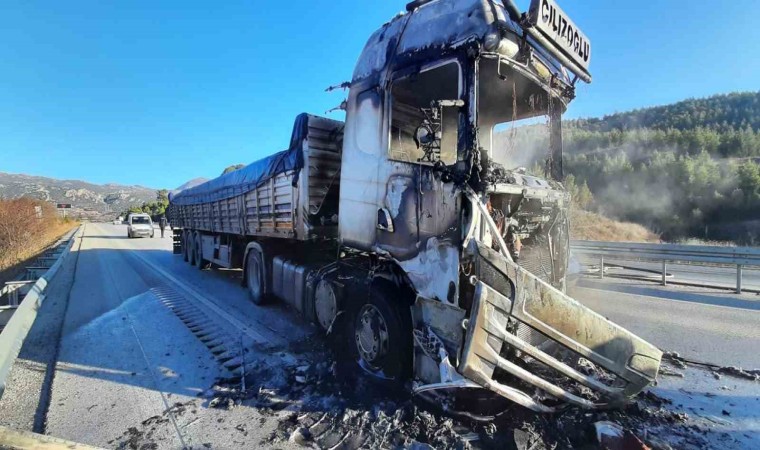 Burdur-Antalya karayolunda seyir halinde olan tır yanarak kullanılamaz hale geldi.