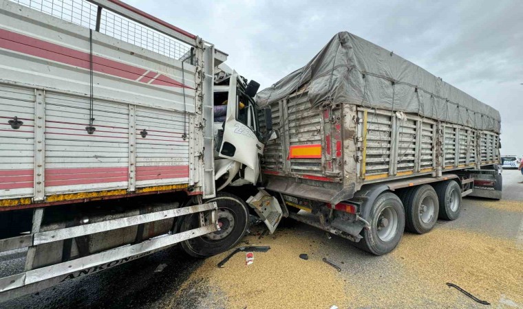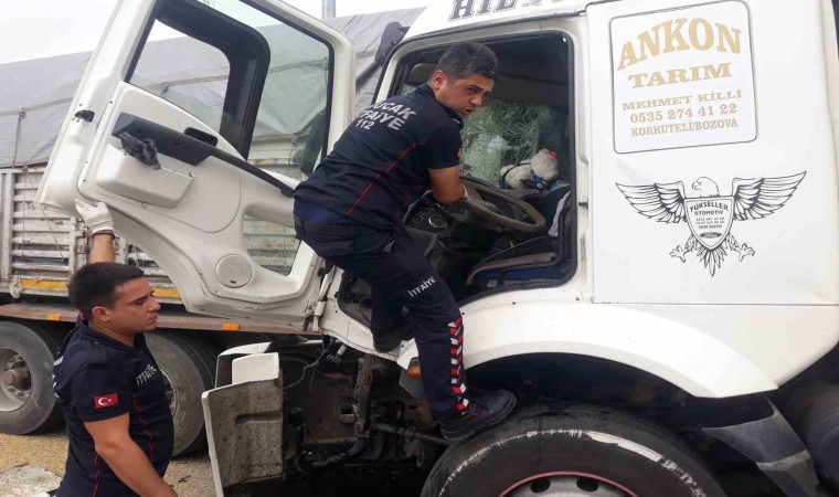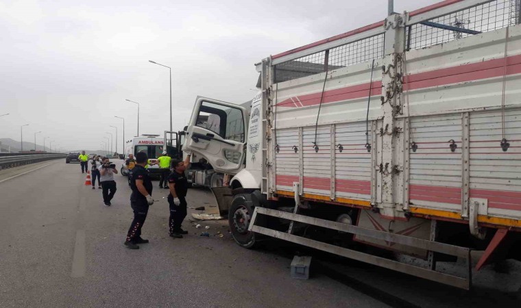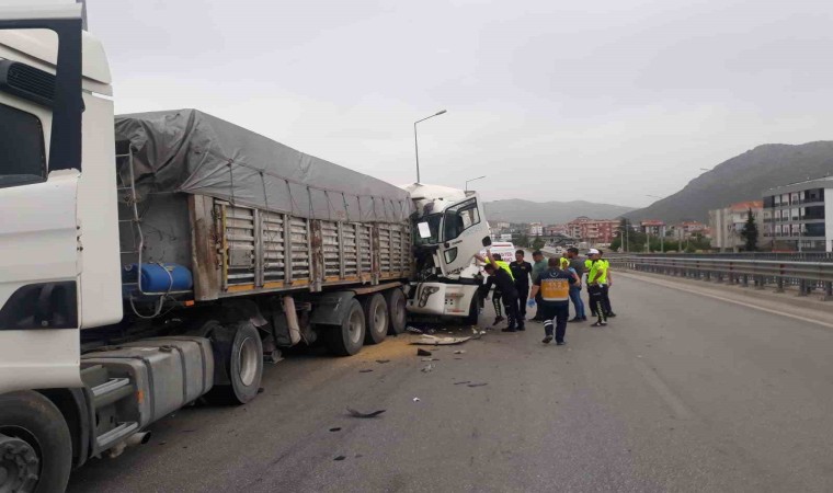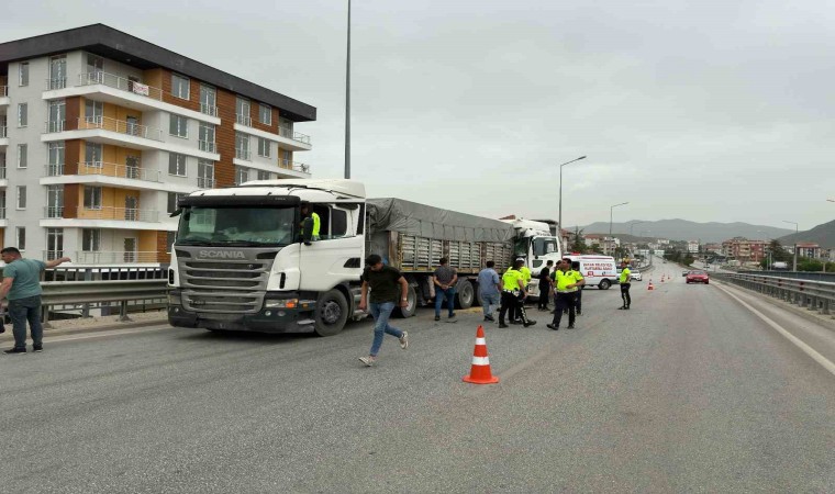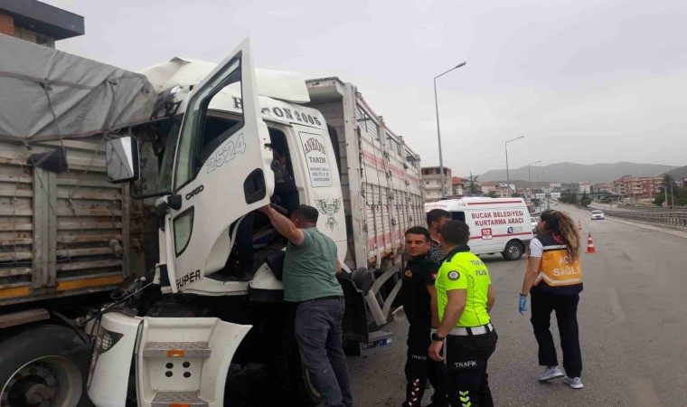 Burdur’un Bucak ilçesinde üst geçitte lastiği patladığı için yavaş bir şekilde ilerleyen tıra arkadan çarpan kamyon sürücüsü yaralandı.