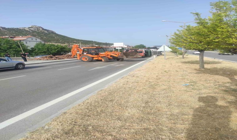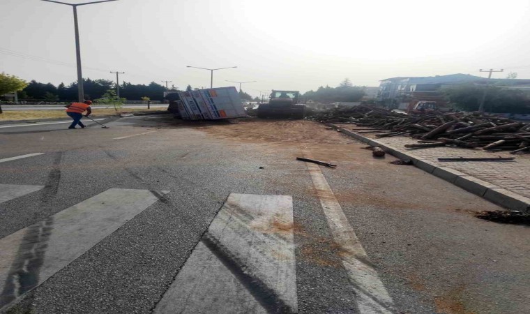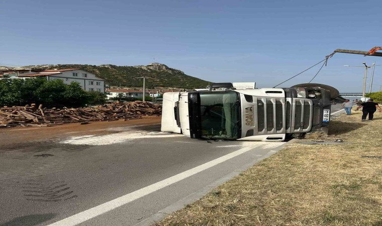 Burdur-Fethiye kara yolunda seyir halindeyken sürücüsünün direksiyon hakimiyetini kaybettiği tomruk yüklü kamyon devrilince yol kısa süreli trafiğe kapandı.
