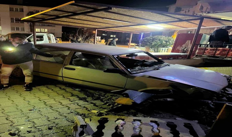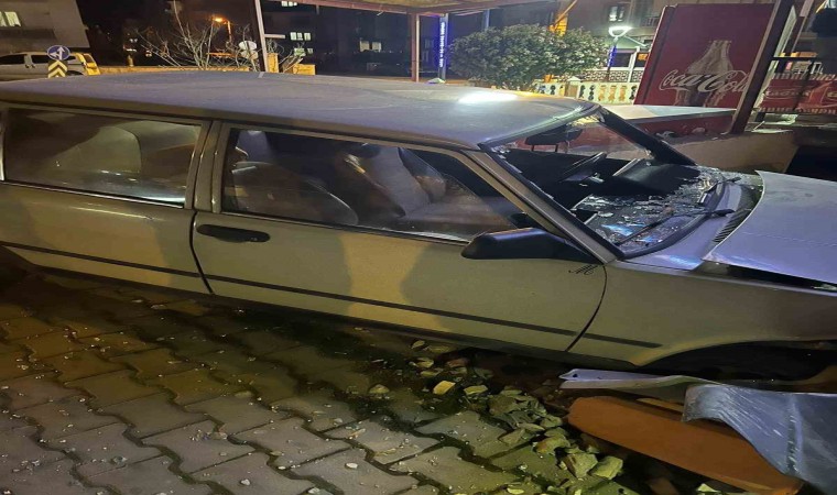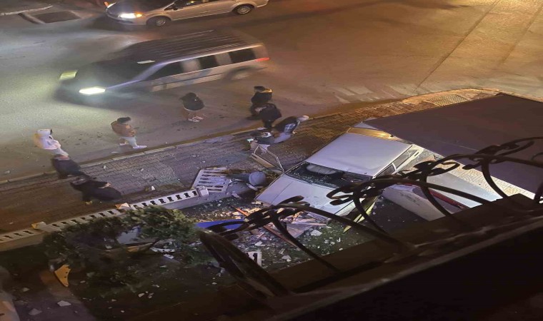 Burdur’da virajı alamayan otomobil, yol kenarındaki apartmanın bahçe duvarına çarptı.