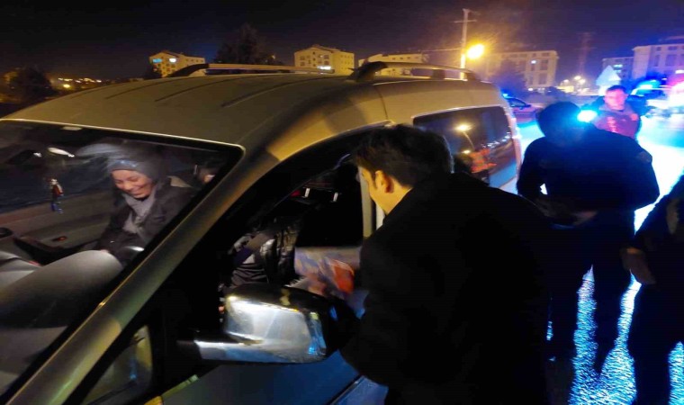 Yapılan kontroller esnasında sürücülere ise ekipler tarafından tatlı ikramında bulunuldu.