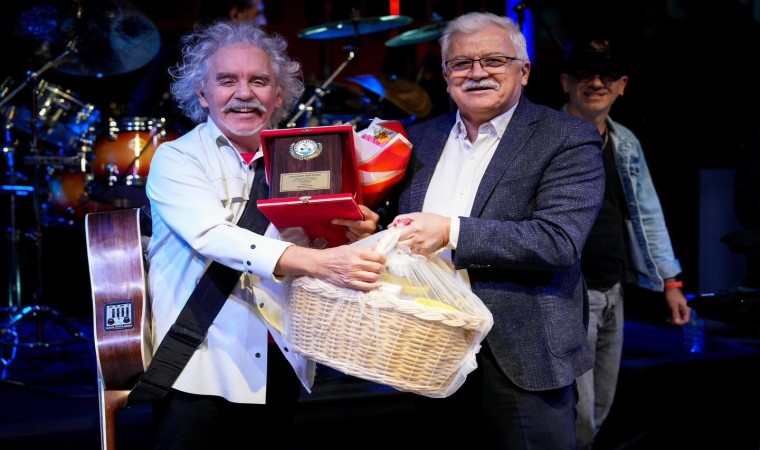 Başkan Ali Kemal Deveciler, efsane müzik grubuna anlamlı gece için teşekkürlerini sunarak grubun solisti Derya Köroğlu’na teşekkür plaketi ve yöresel ürünlerden oluşan hediye paketini takdim etti.