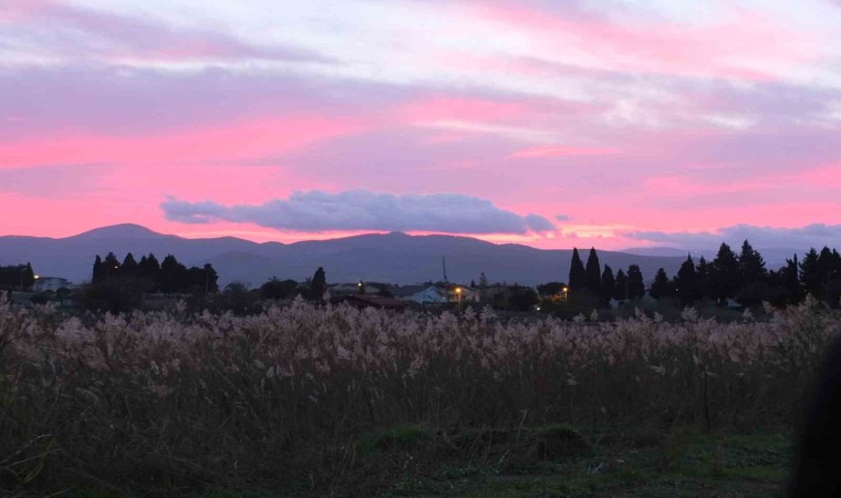 Burhaniye ilçesinde, güneşin doğuşu sırasında ilginç görüntüler oluştu. Madra Dağının ardından doğan güneşin bulutların arasında oluşturduğu güzellik objektiflere böyle yansıdı.