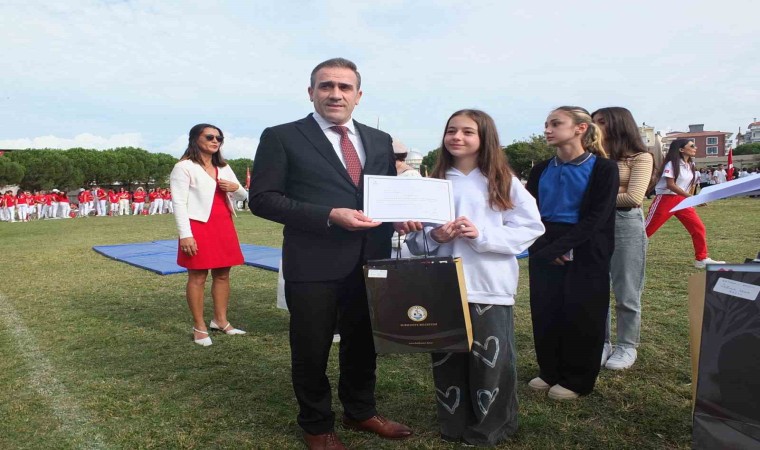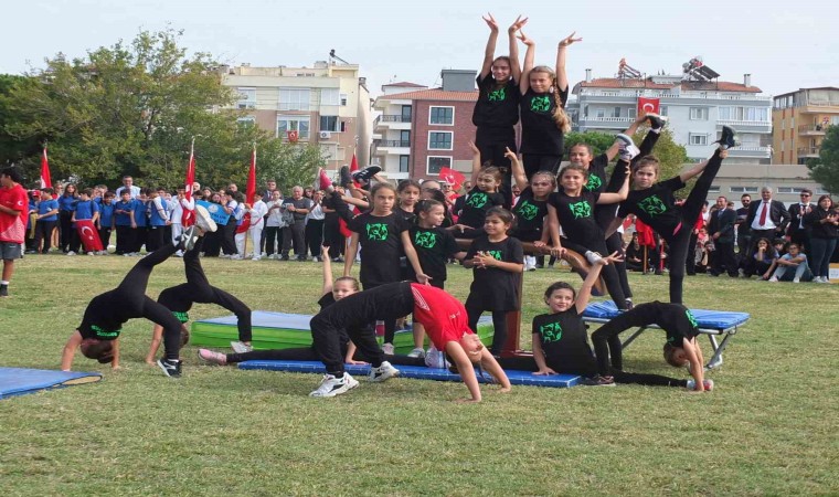 Daha sonra, öğrenciler şiir okudu, halk oyunları ekipleri ve küçük sporcular gösteriler yaptı. İlçe Gençlik ve Spor Müdürlüğünde çalışmalarını sürdüren kadın sporcularda gösteri yaptı. İlçede düzenlenen resim, şiir ve kompozisyon yarışmalarında dereceye giren öğrencilerin ödülleri Kaymakam İlyas Memiş, Garnizon Komutanı Binbaşı Yusuf Kaya ve Belediye Başkanı Ali Kemal Deveciler tarafından verildi. Hasan Akın Anadolu Lisesi öğretmenlerinden oluşan koro da mini konser verdi. Tribünleri dolduran vatandaşlar ellerinde bayraklarla gösteri gruplarını alkışladı. Kaymakam İlyas Memiş, törenlerde görev alan öğretmen ve öğrencileri kutladı.