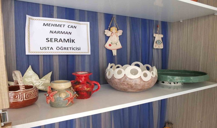 Burhaniye ilçesinde, Halk Eğitimi Merkezi Müdürlüğünde kurslar devam ederken, el emeği ürünler de sergilenmeye başladı.